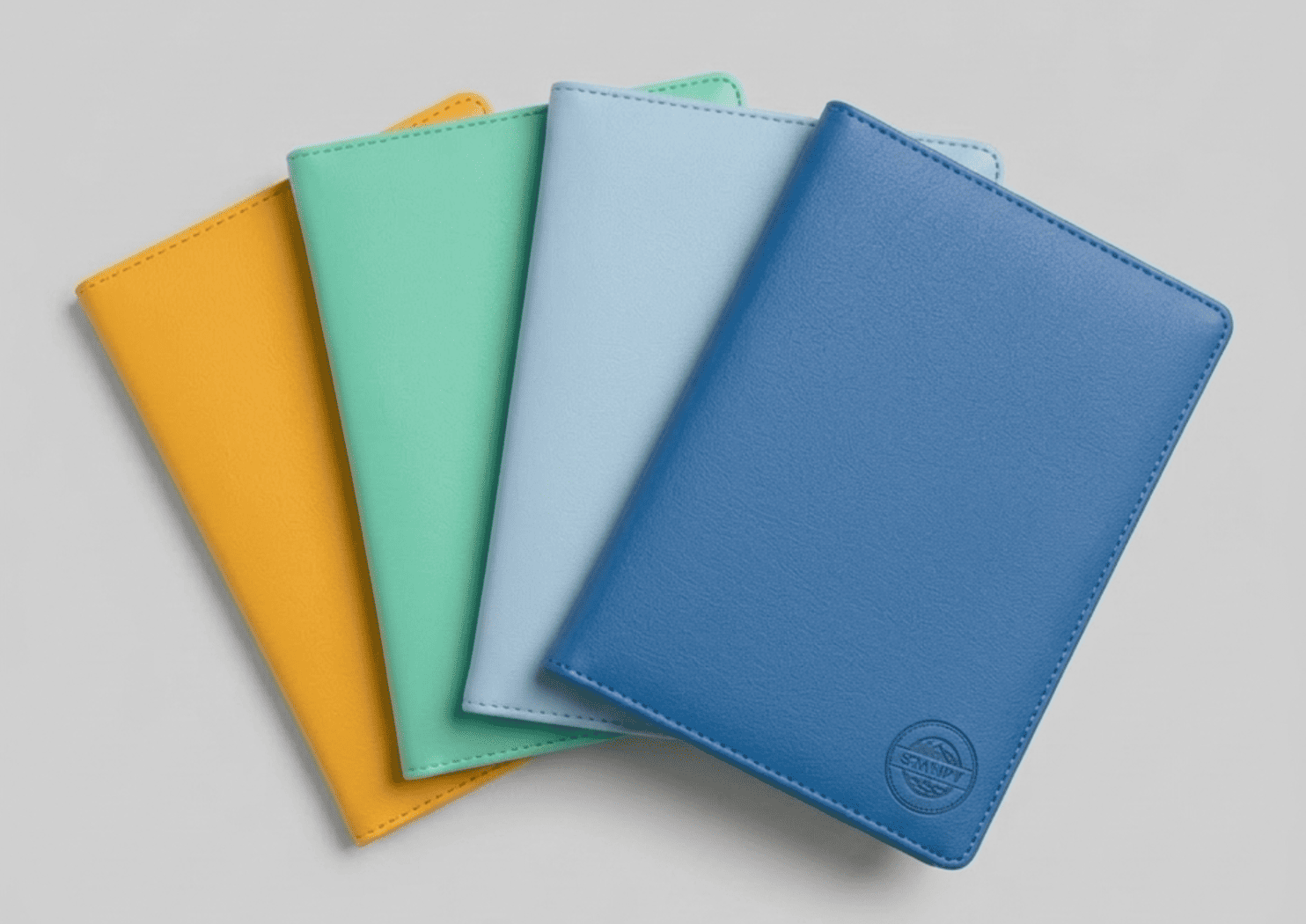 Au-delà de la protection, la personnalisation transforme un accessoire fonctionnel en véritable compagnon de voyage. Elle se fait ici à travers un choix de quatre couleurs disponibles ainsi que des stickers représentant différents pays. Cela permet de rendre chaque protège passeport facilement identifiable.
